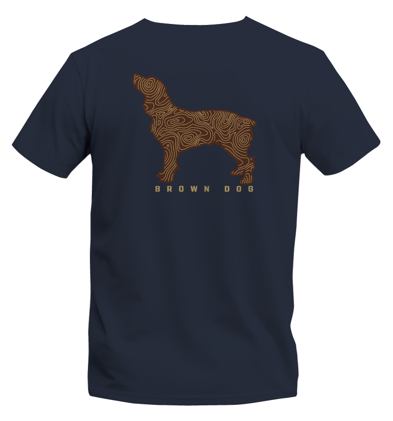 Adventure starts with your best friend by your side. The Topo Beau Tee from Brown Dog features the iconic Brown Dog silhouette overlaid with a topographic map pattern — a nod to the trails, fields, and waterways that shape every great story outdoors.
